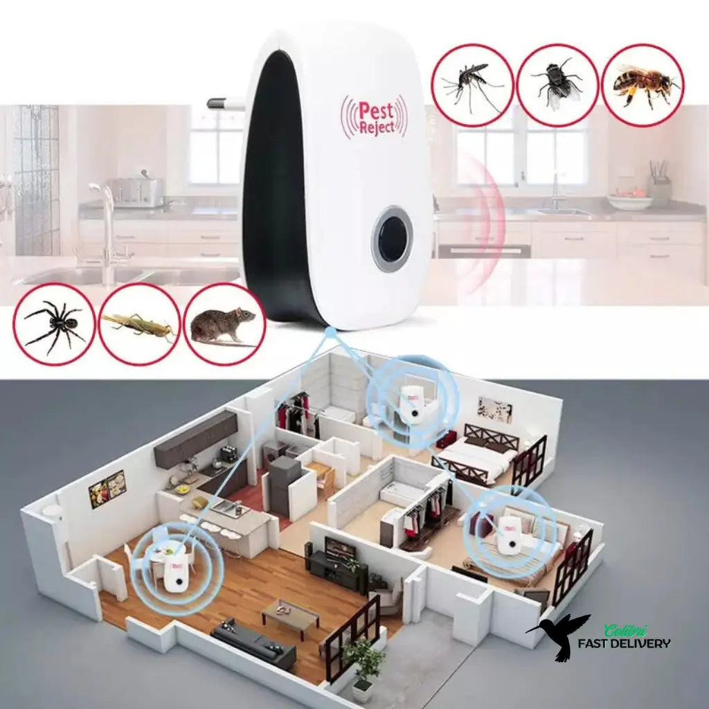 Repelente Ultrasonido — Seguro para niños y mascotas. Enchufa y listo: empieza a actuar en 24–72 h (efecto completo 2–3 semanas ).